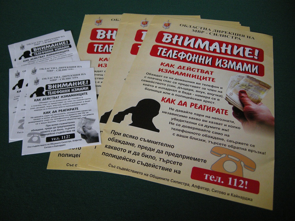 РУ-Силистра стартира информационна кампания за превенция на телефонните измами. За целта са отпечатани 1200 флаера и 350 постера с основна информация за механизма на извършване и начина за предпазване от този вид престъпна дейност. При необходимост е предвидена възможност за отпечатване на допълнителен тираж от информационните материали. Регионални печатни медии от своя страна също изразиха готовност да участват в кампанията, като публикуват превантивната информация.