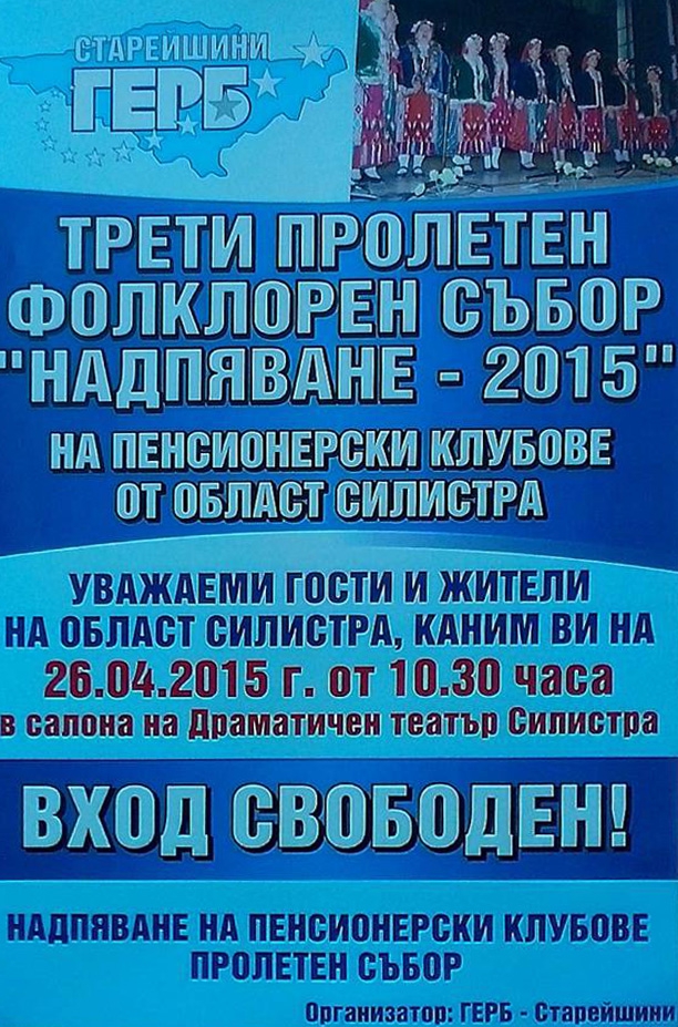 Над 450 самодейци от Област Силистра са зявили участие във фолклорния събор. Организатор на събора е Старейшини ГЕРБ- Силистра с областен координатор – Иван Иванов.