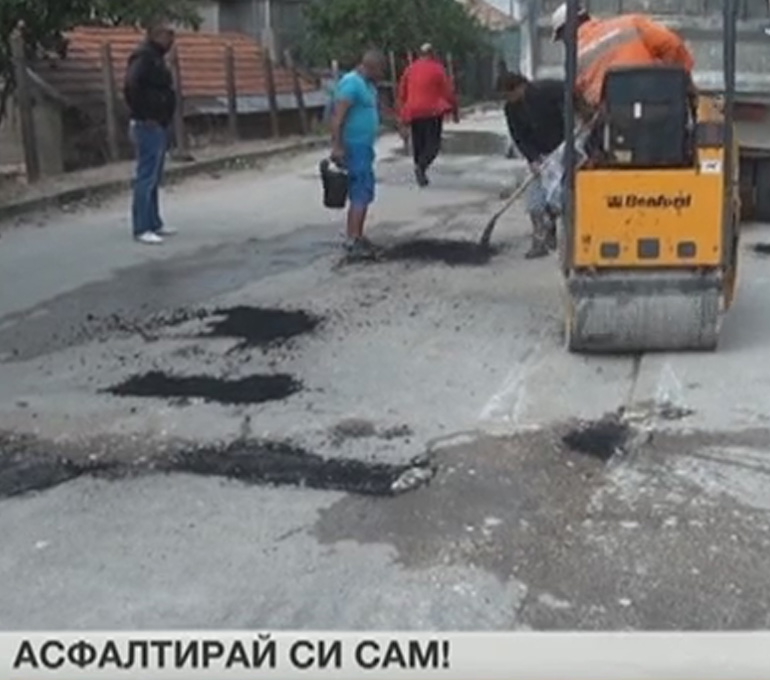 Роми от Калипетрово сами си купиха асфалт, за да пълнят дупки