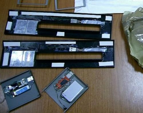 В кухина под радиокасетофона е открита кутия от цигари, пълна с 2 метални пластини с неправилна форма, електронни компоненти и батерии. В запечатан пощенски плик е открито едно самоделно устройство от електронни компоненти с карта памет 16 GB и батерия за мобилен телефон към него.