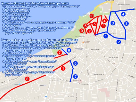 Забранено е паркирането на Пътни превозни средства в горецитираните участъци, като не се допуска преминаване по горецитираните пътни артерии, не се допуска паркиране и продължителен престой, който да възпрепятства преминаването на строителната техника и/или създава предпоставки за възникване на опасност от пътнотранспортни произшествия в посочените участъци от общинската улична мрежа.