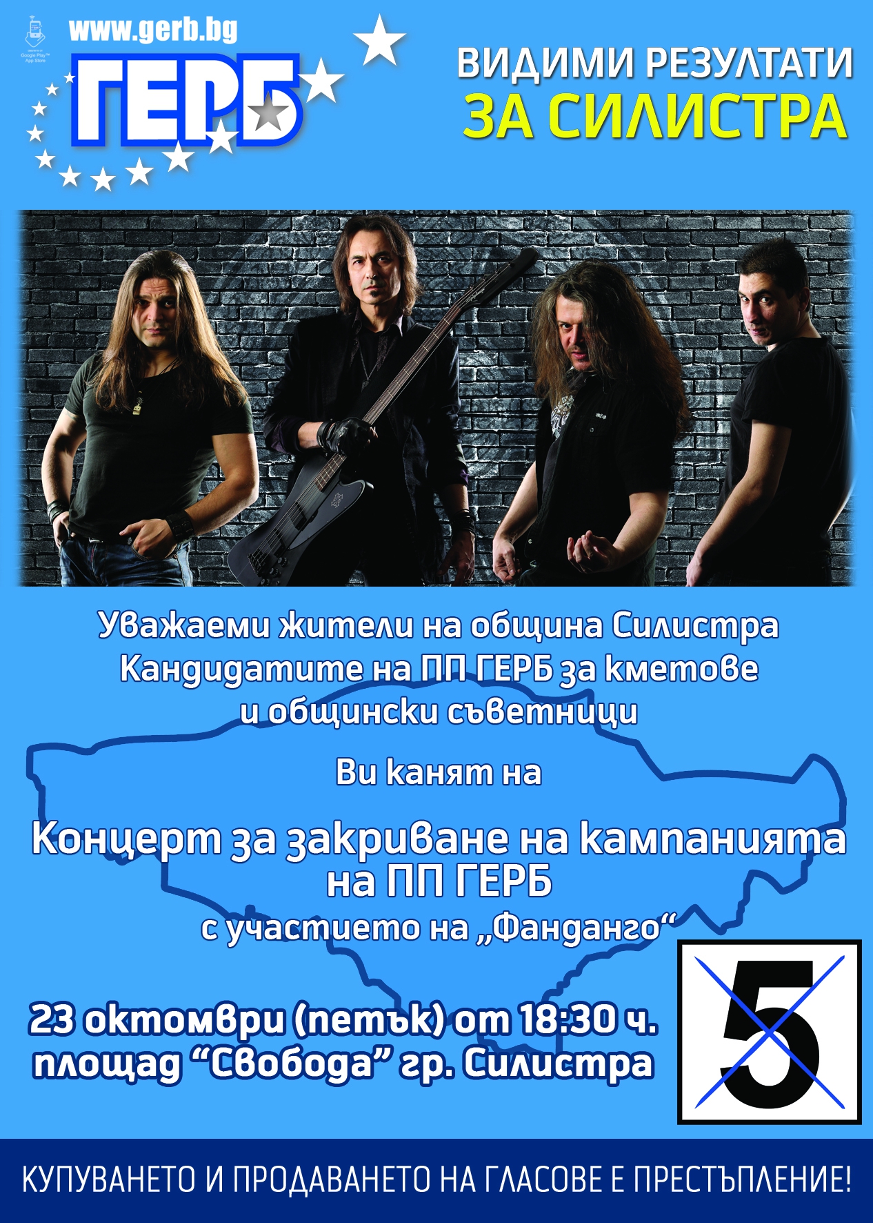 Лошото време на Силистра ще промени мястото на концерта закриващи успешната кампания на ГЕРБ. Събитието се мести на закрито в залата на Драматичен театър "Сава Доброплодни" Часът на събитието се запазва - 18.30ч.