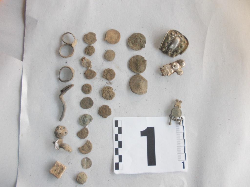 В хода на последвалите процесуално-следствени действия полицейските служители са претърсили домовете на О.А. (56 г.) и Е.И. (43 г.) в село Чуковец. В къщата на първия са открити монета с видимо старинен вид, метален предмет, наподобяващ горна част от пръстен с неясно изображение, 4 металдетектора и части от такива. На втория адрес полицаите се натъкнали на металдетектор и монета, които са иззети.