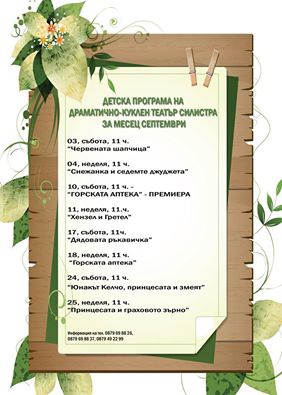 Детската програма на Драматично-куклен театър в Силистра през месец септември.