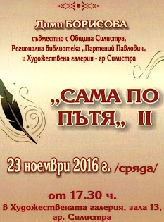 Зала 13 на Художествена галерия Силистра за пореден път се превръща в място, където си дават среща литературната проява и духовното общуване в името на истината за миналото. На 23 ноември предстои представянето на втората част на прозаичната книга "Сама по пътя", дело на Дими Борисова (Димитричка Георгиева). Творбата е сред съвременните примери за пресъздаване на събития от близкото минало със средствата на мемоаристиката.
