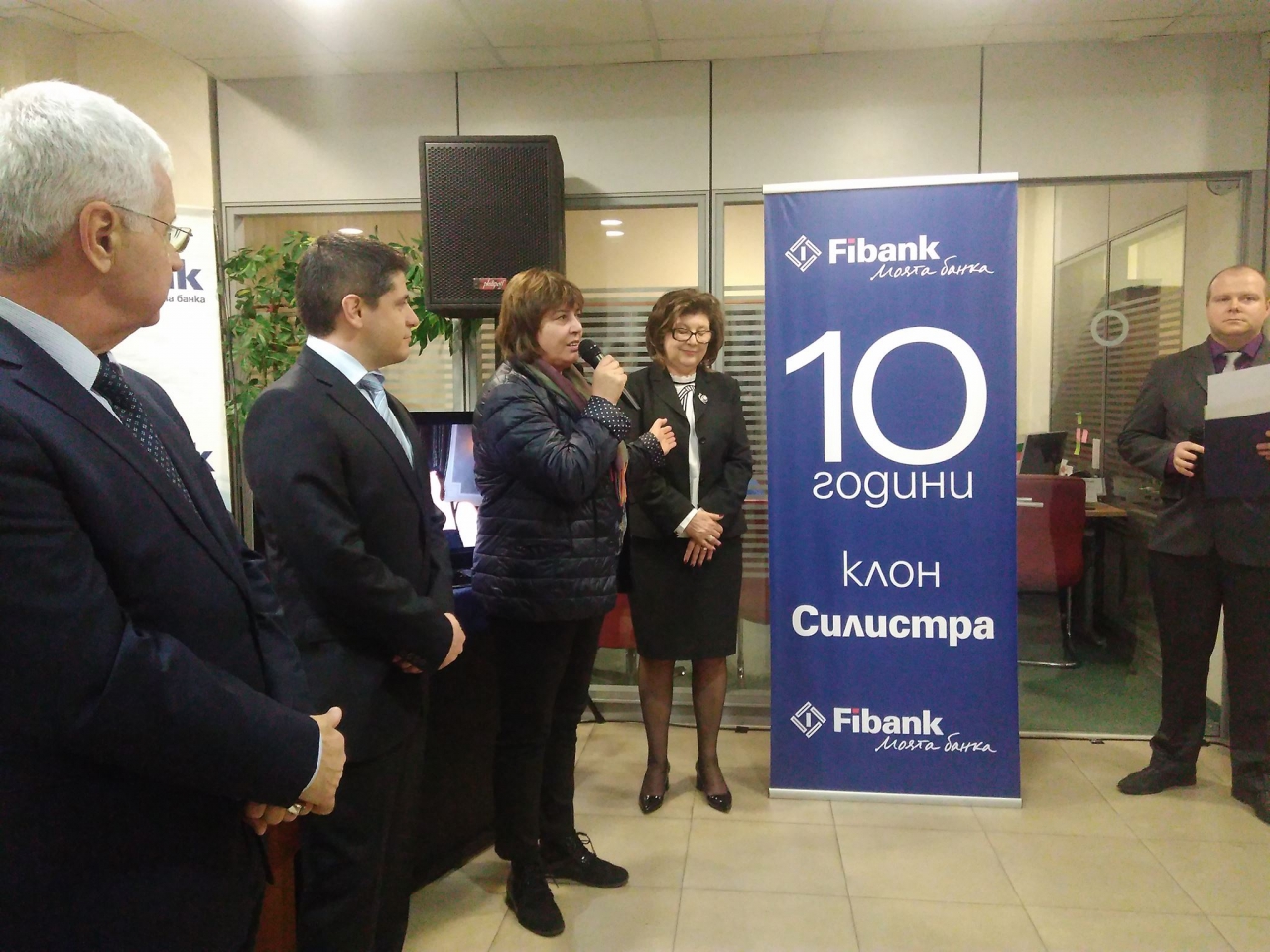 Председателят на Общинския съвет-д-р Мария Димитрова поднесе на директора на банката г-жа Драга Неделчева поздрави и пожелания от свое име и от името на Кмета на общината ,по повод 10 години от основаването на банката празника на двата клона на банката.