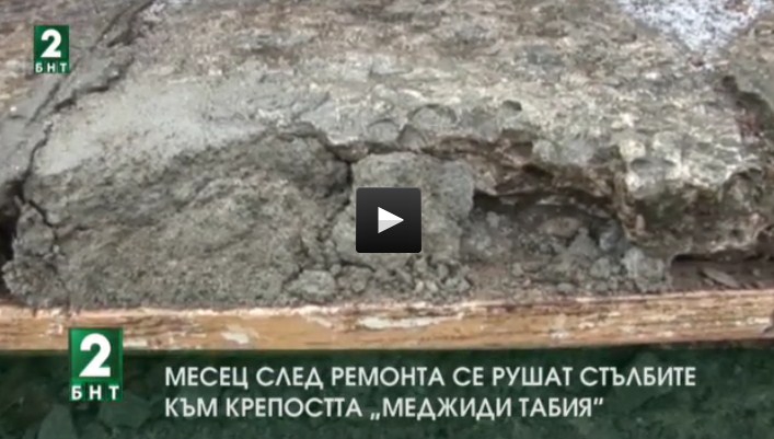 Недоволни граждани в Силистра сигнализират за некачествен ремонт на крепостта "Меджиди табия". Според тях парите по проекта са хвърлени на вятъра. Само месец след като бяха ремонтирани новите стълби към местността се рушат.